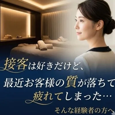 当店では、同年代のスタッフが多数活躍中。お客様が求めているのは、若さだけではない「包容力」や「落ち着いた接客」です。あなたのこれまでの人生経験すべてが、ここでは最高のおもてなしに変わります。無理なく、自分らしく輝ける場所で、新しいキャリアをスタートしませんか?