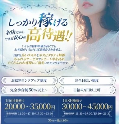 週1日〜OKの自由出勤制だから、プライベート優先で働けます。それなのに**バック率は50%〜80%**と高水準!