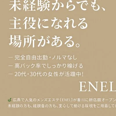広島・香川で複数店舗を展開するENELグループ。信頼あるブランドで安心して働けます。