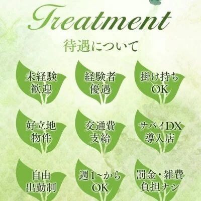 制服貸与、交通費完備、深夜送迎有り、その他待遇充実