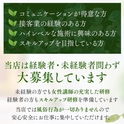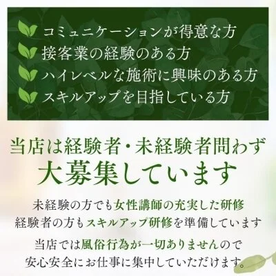 業務経験者の方、現在他店在籍セラピスト様からのご応募をお待ちしております。