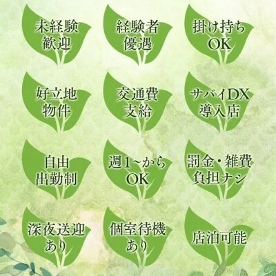 制服貸与、交通費完備、深夜送迎有り、その他待遇充実