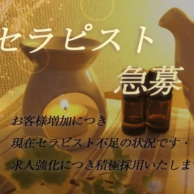 ☆完全自由出勤!☆送迎有ります!☆好きな時間に来て、好きな時間に帰れる!☆短い時間で効率良く稼げる!☆施術室7部屋あるので、毎日でも出勤可能!☆ダブルワークも大歓迎致します!☆やる気次第で高収入ゲット!☆完全罰金なしシステム!☆初めてのお仕事でも安心して稼げます!☆お話だけでも聞きたい方大歓迎いたします!☆デビュー前の施術講習&業務説明が丁寧!等々その他色々得点をご用意いたしまして、皆様からのご連絡をスタッフ一同心よりお待ち申し上げております。
