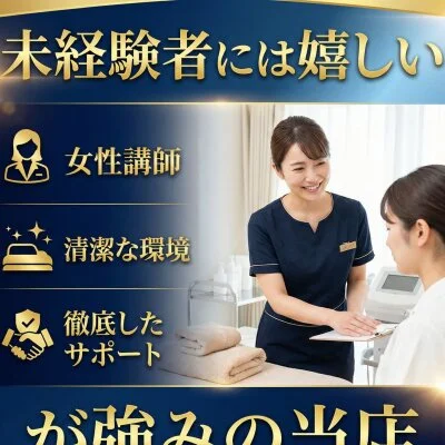 新しいことに挑戦したい貴女を全力でサポートします。大手ならではの充実した研修制度があるため、未経験からスタートした30代・40代のスタッフも多数活躍中です。困ったときはすぐにフォローできる体制があるので、安心して勤務をスタートできますよ。