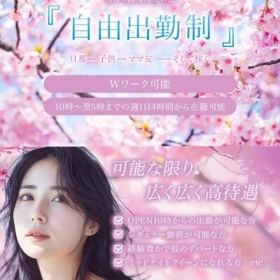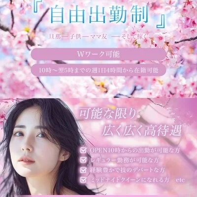 自由な出勤スタイルとなっておりまして、空いた時間だけのアルバイトも可能ですし、