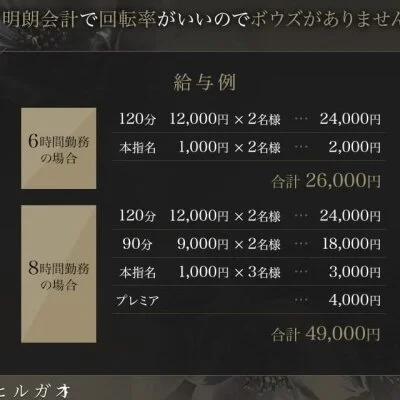 パートやアルバイトの様に時給ではないメンズエステというお仕事で稼げるのは大前提で、重要視してほしいのが「客層」「環境」「安定」。