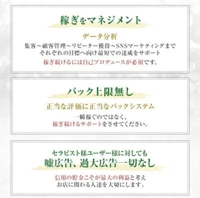 セラピスト様 ユーザー様に対しても嘘広告、過大広告一切なし