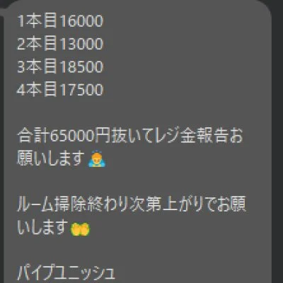 給料例 80分16800円貰えます(引かれもの、雑費、罰金などはありません)