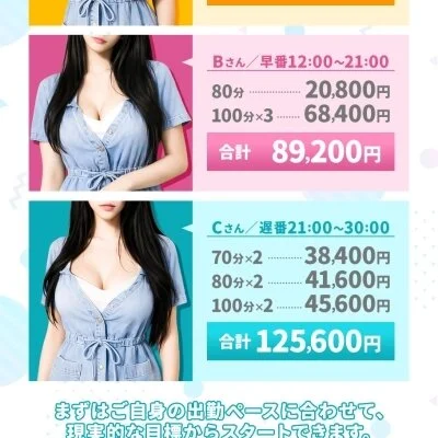 業界最高水準の報酬設定で、入店初日から80分でも最大18,000円の高額報酬が発生します。