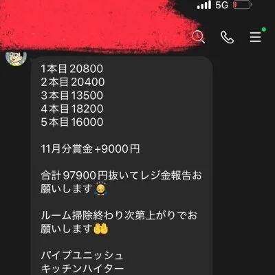 給料例 80分16800円貰えます(引かれもの、雑費、罰金などはありません)