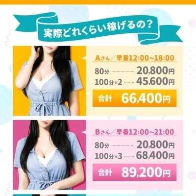 業界最高水準の報酬設定で、入店初日から80分でも最大18,000円の高額報酬が発生します。