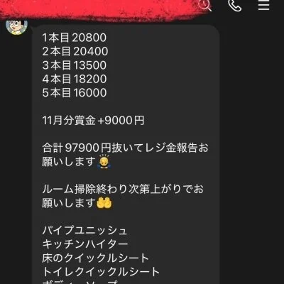 給料例 80分16800円貰えます(引かれもの、雑費、罰金などはありません)