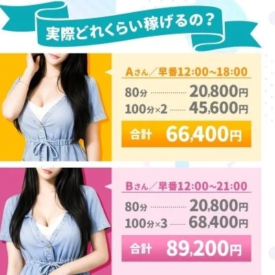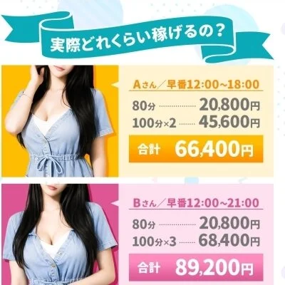 業界最高水準の報酬設定で、入店初日から80分でも最大18,000円の高額報酬が発生します。