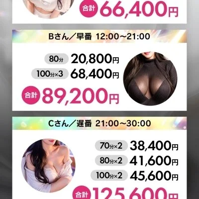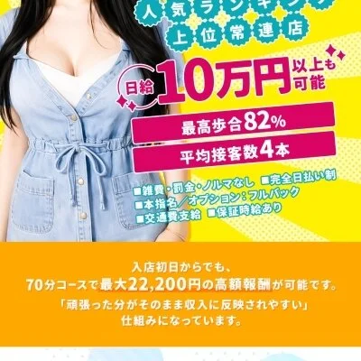 業界最高水準の報酬設定で、入店初日から80分でも最大18,000円の高額報酬が発生します。