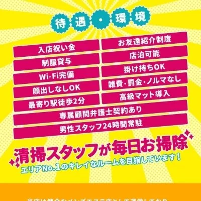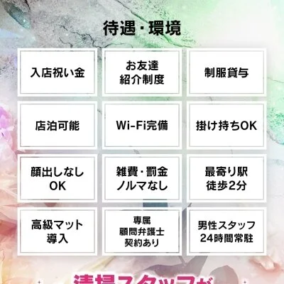 未経験の女の子でも安心してお仕事して頂けるように、充実したサポート体制を整えております♪