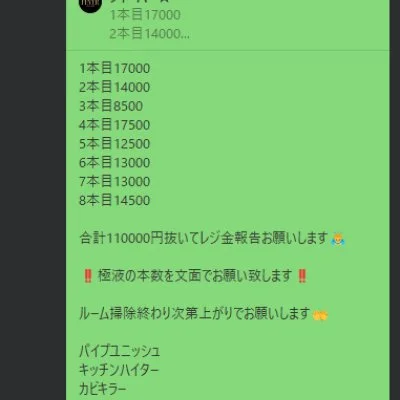 給料例 80分16800円貰えます(引かれもの、雑費、罰金などはありません)