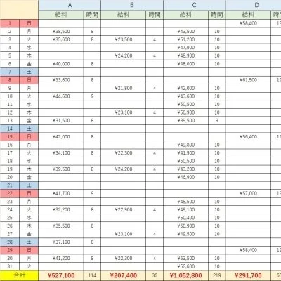 Excelに一人ずつ出勤時間とお給料を入力し、地道に計算しました(*^^)v
