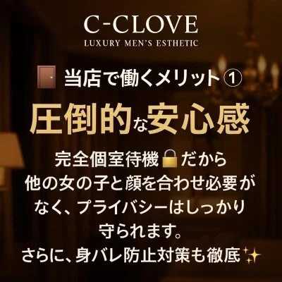 C-CLOVEなら、誰にも知られずに安全に、そして自分らしく働くことができます💎。