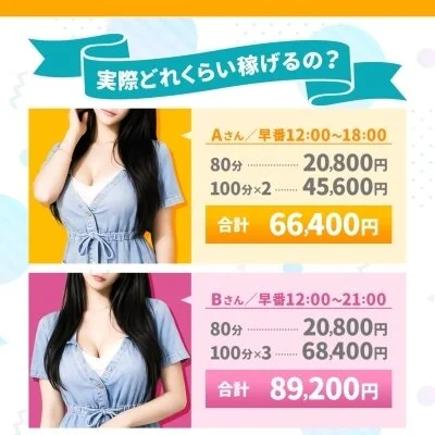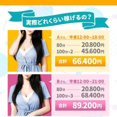 業界最高水準の報酬設定で、入店初日から80分でも最大18,000円の高額報酬が発生します。