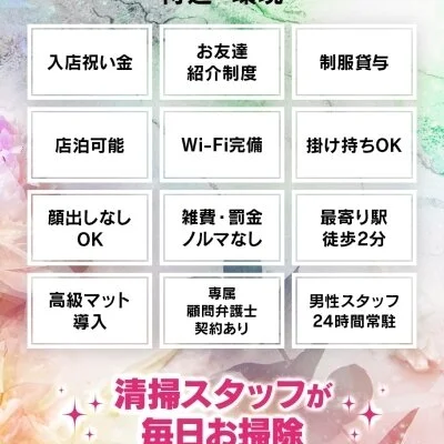 未経験の女の子でも安心してお仕事して頂けるように、充実したサポート体制を整えております♪