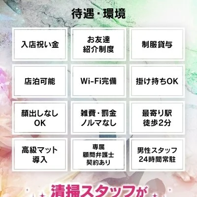 未経験の女の子でも安心してお仕事して頂けるように、充実したサポート体制を整えております♪