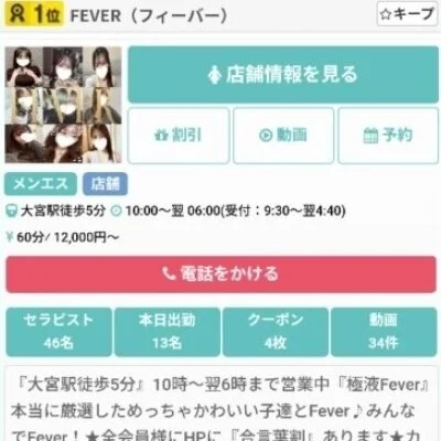 「集客力がちゃんとしているお店で働きたい!」「効率よく高収入を狙えるお店はないのかな?」と悩んでいる方、大宮・池袋『FEVER』を是非ご覧ください!当店は、これまで培ったノウハウでエリア屈指の集客率をキープする人気メンズエステ☆大宮駅・池袋駅から徒歩5分程度の場所にあるから、出勤もラクラクなのではないでしょうか?