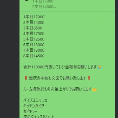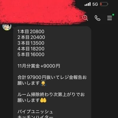 給料例 80分16800円貰えます(引かれもの、雑費、罰金などはありません)