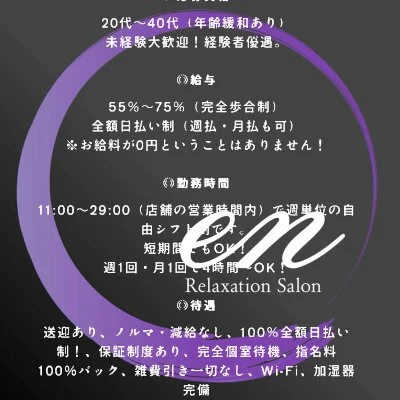 • 新ルーム完成!高待遇で稼ぎたい方!20〜40代活躍中!!