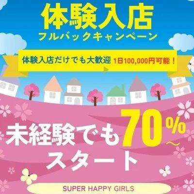 SUPER HAPPY GIRLSでは、 今なら 1日体験入店フルバックキャンペーン を実施中! 初日からしっかり稼げるチャンスです💖