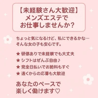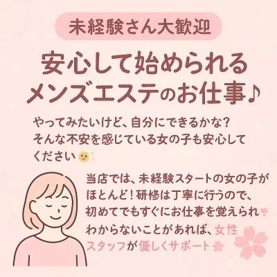 研修は丁寧に行うので、初めてでもすぐにお仕事を覚えられます💖