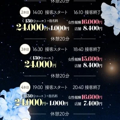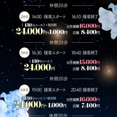 当店は完全自由シフト制。出勤日数や時間も無理なく調整でき、プライベートを大切にしながら働ける環境です。講習やサポート体制も整えているので、未経験の方でも不安なくスタートできます。