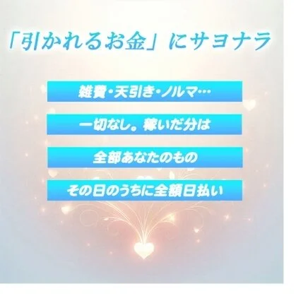 さらに、アリバイ対策も万全です。 お給料の全額手渡しはもちろん、あなたの事情に合わせて最大限の工夫をいたします。