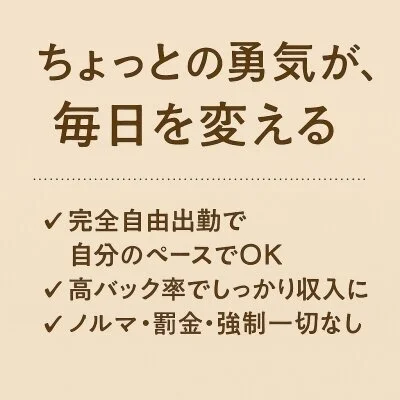 ✔ ノルマ・罰金・強制なし(プレッシャーゼロで働ける)
