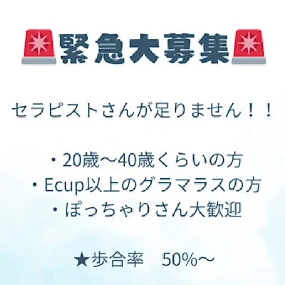 Ecup以上・ぽっちゃりセラピストさん大募集🎵