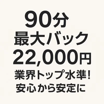 当店の一番の魅力はやはり待遇の良さです。90分コースで最大22,000円バックという高水準をご用意しておりますので、短時間でもしっかり稼ぐことが可能です。副業の方や学校帰りの方でも効率よく収入につなげられます。