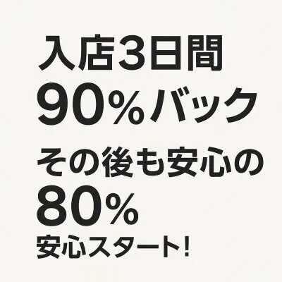 • ✨入店3日間は90%バック!その後も80%バック✨