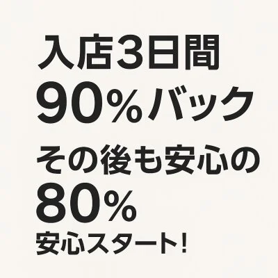 もちろん3日間だけで終わりではありません。その後も安定の80%バックを継続。短期でしっかり稼ぎたい方も、長期で安定して働きたい方も安心です。