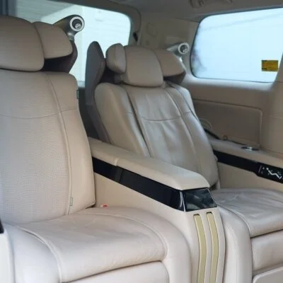 移動中も楽々、マッサージチェア付きの後部座席、メイク直し等に必要な専用ライトと読書灯、車内標準冷蔵庫付き、足を伸ばせるオットマン仕様等、極限まで移動ストレス緩和に特化、まるでCEOになったかのような気分でのご移動が可能でございます♪